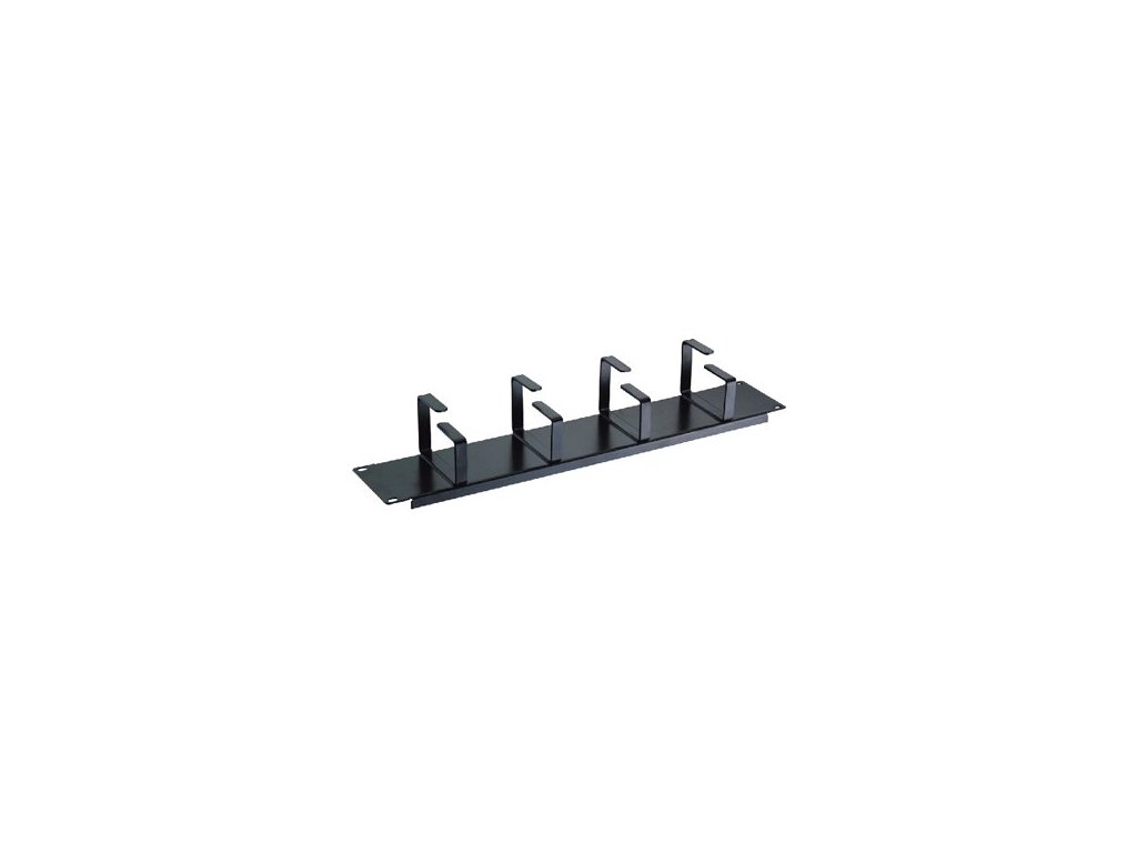 19" vyvazovací panel 2U 4xkov.háček (8,0 x 4,5-6,0cm) černý