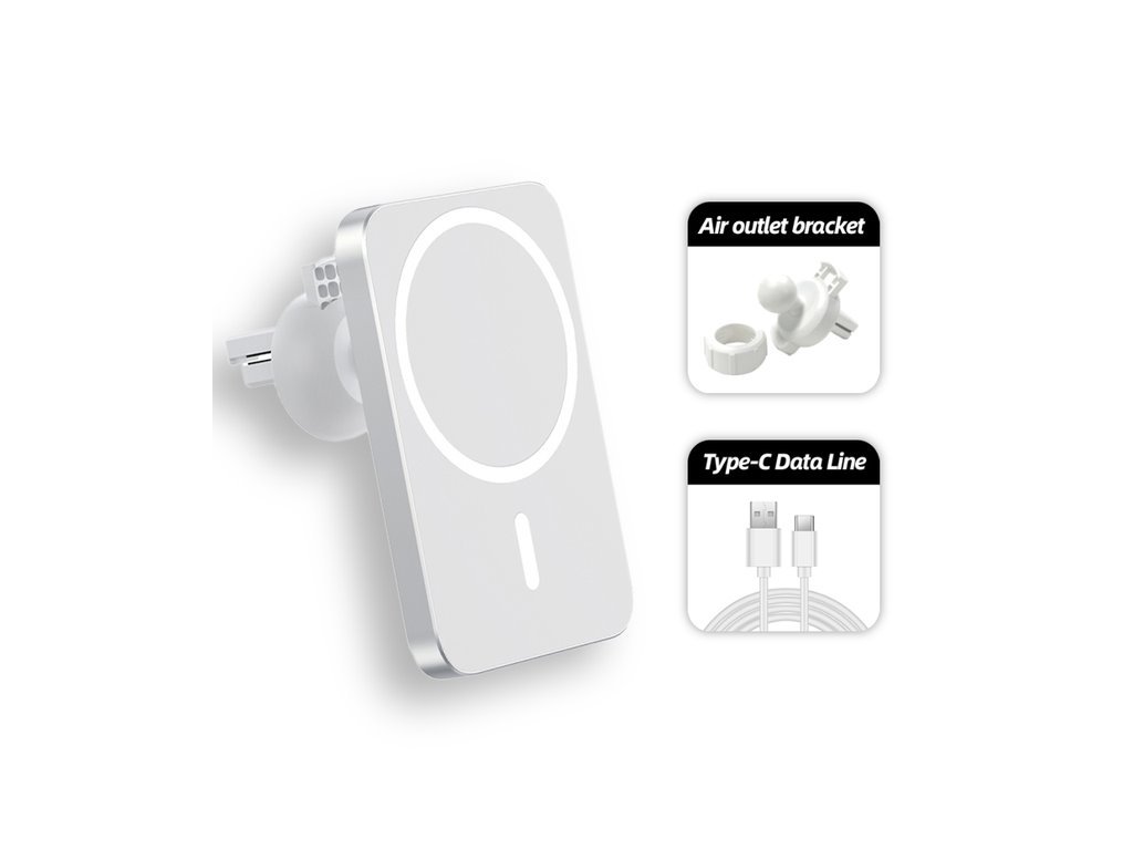bezdrátová magnetická auto QI nabíječka 15W, MagSafe kompatibilní, bílá