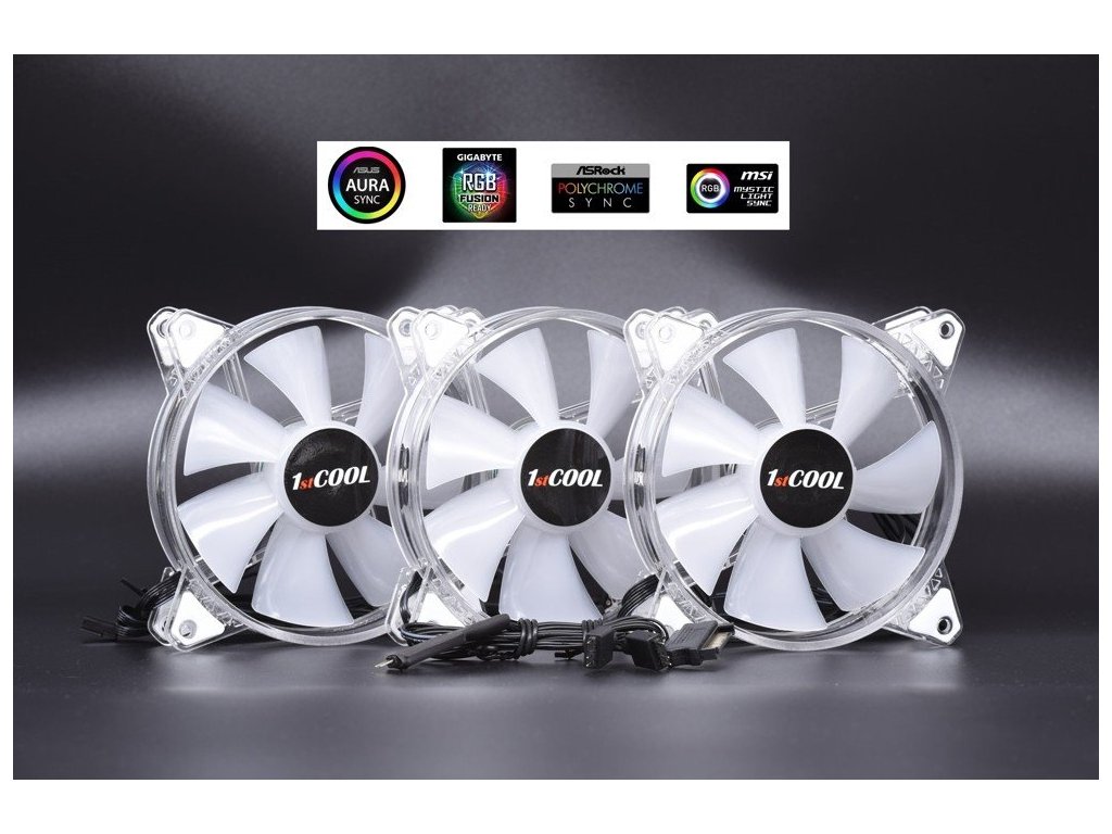 1stCOOL KIT AURA EVO CRYSTAL ARGB 3x CRYSTAL White ventilátor + ARGB Nano řadič