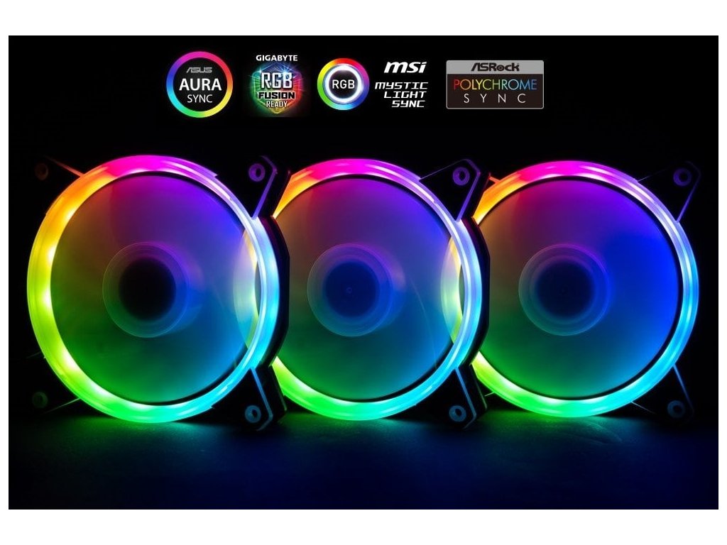 Také si můžete si vybrat z několika variant připravených setů a nebo poskládat řešení dle vlastních preferencí, všechny komponenty jsou vzájemně kompatibilní. A s řadičem a dálkovým ovládáním máte možnost sami regulovat výběr i rychlosti efektů, regulace intenzity podsvícení, otáček ventilátorů a nebo propojit celý systém přímo s základní deskou Vašeho počítače a to prostřednictvím třípinového ARGB konektoru. Řešení je kompatibilní se systémy ASUS Aura Sync, MSI Mystic Light, GIGABYTE RGB Fusion i ASRock Polychrome Sync.