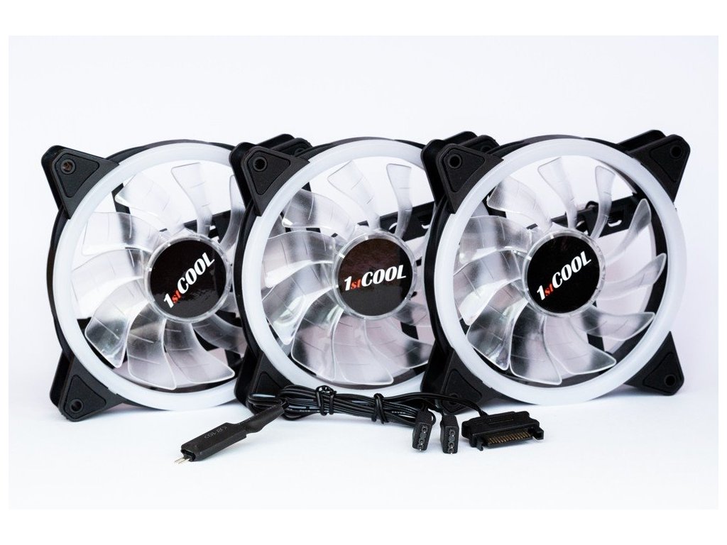 1stCOOL KIT AURA EVO1 ARGB, 3x Dual Ring ventilátor + ARGB Nano / Reset řadič. Kompletní set umožňuje i připojení jakéhokoli dalšího ARGB příslušenství vybaveného standardním 3pin ARGB konektorem.