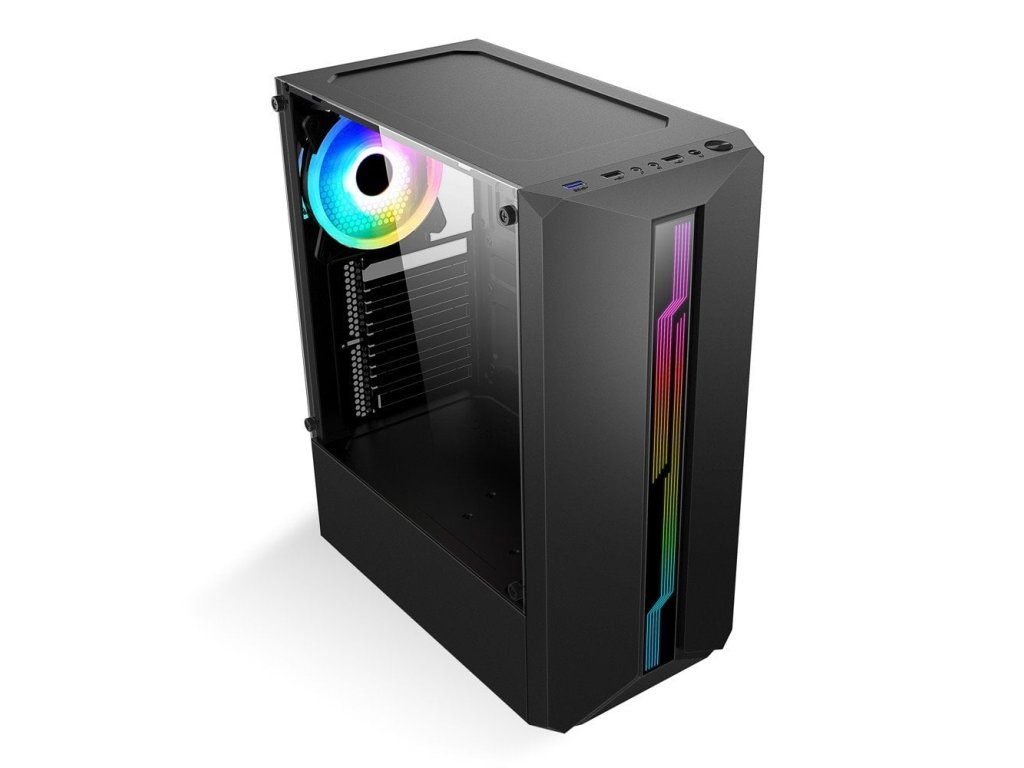 počítačová skříň, PC case, middle tower, interní 2x 3.5", 1x 2.5", 2x USB 2.0, 1x USB 3.0, zadní sRGB ventilátor, HD audio, transparentní bočnice