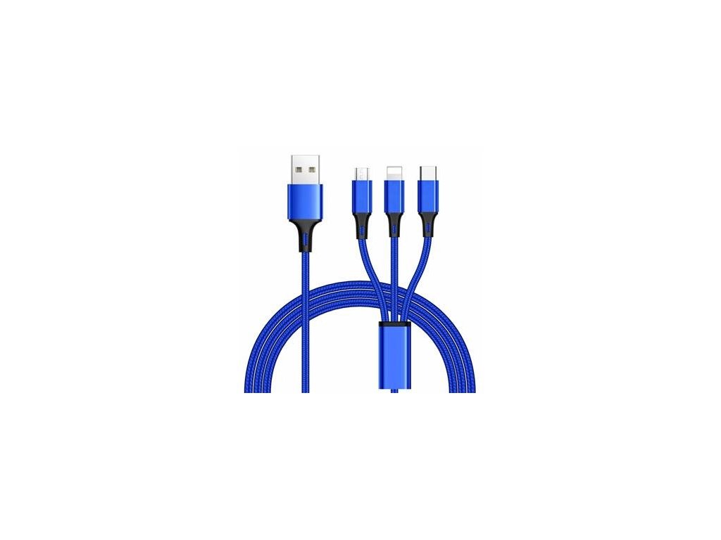 3 in 1 USB kabel, 3 konektory USB-C + microUSB + Lightning pro Apple, 1.2m
