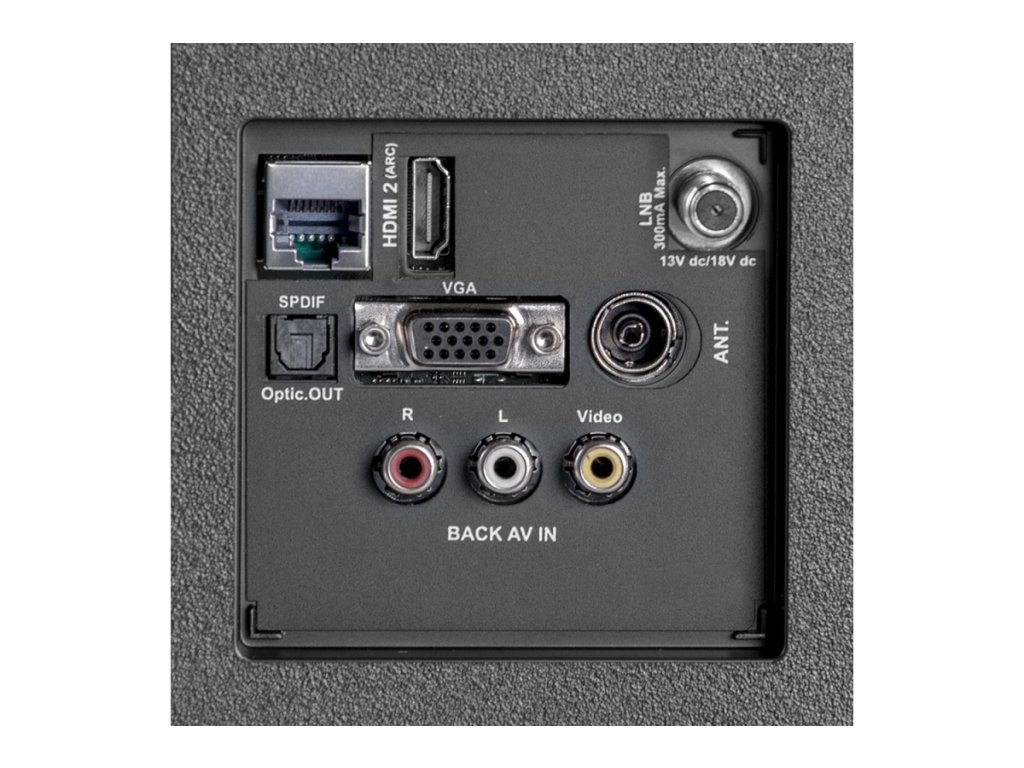 Úhl.80 cm, LED SMART TV. HD Ready (1366x768), HDR, 100 Hz UMR, DVB-T2/C (HEVC). 2x HDMI, konektor SPIDF (coax.), 1x USB, AV IN, CI+ slot. 1000 TXT, 11000 předvoleb, LAN připojení, Internetový prohlížeč, WiFi zabudovaná