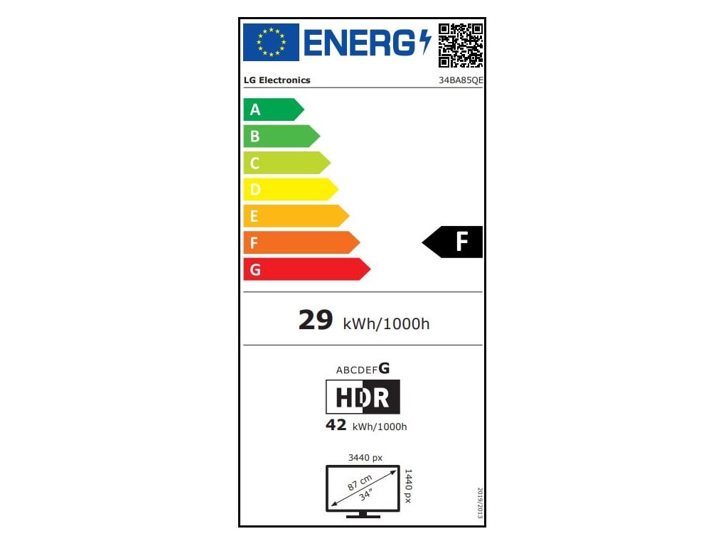 LED monitor, prohnutý, 34", IPS, 3440×1440, 21:9, 5ms, 300cd/m2, 1000:1, 2× HDMI, DisplayPort, USB-C, 4× USB, LAN, KVM, repro, en. tř. F