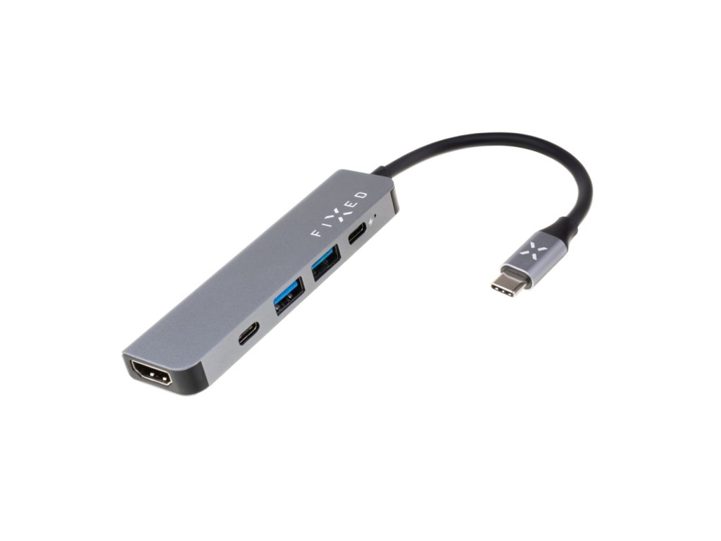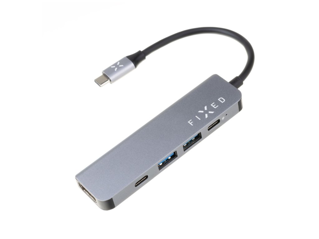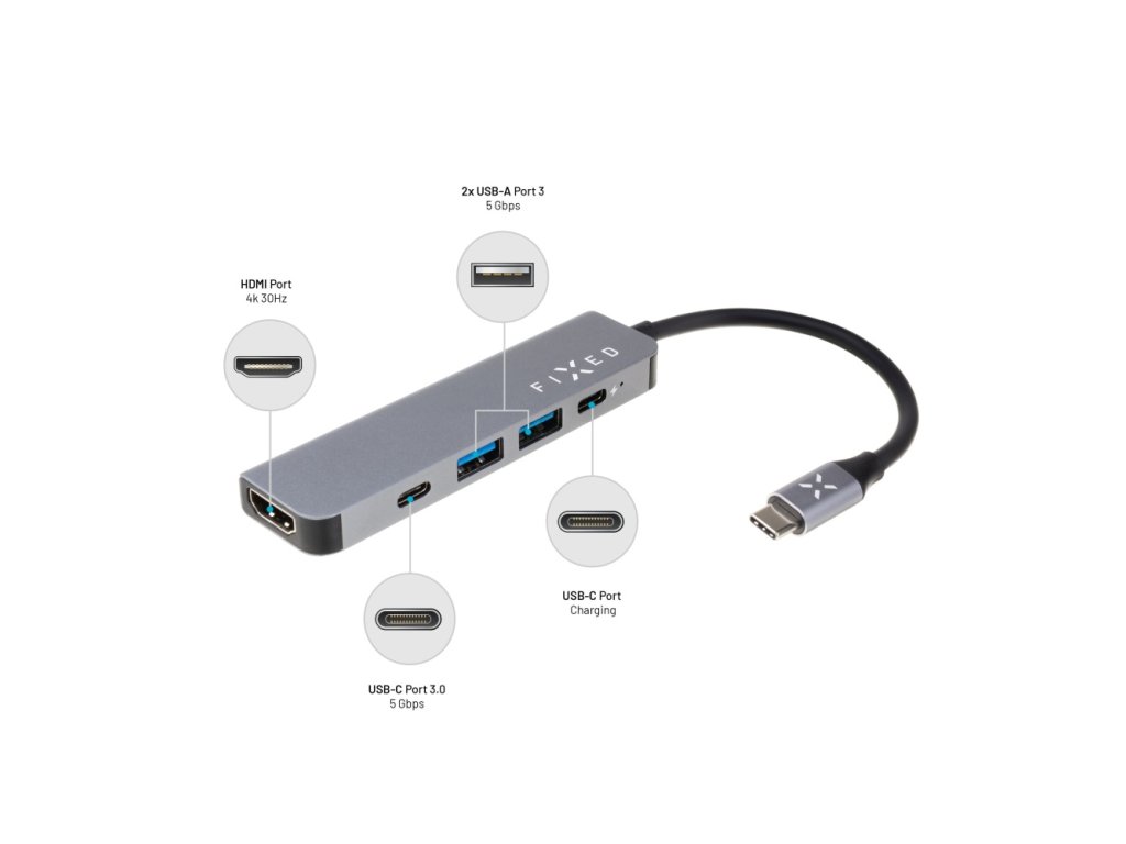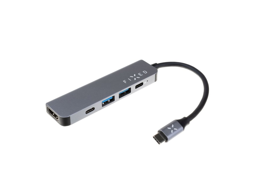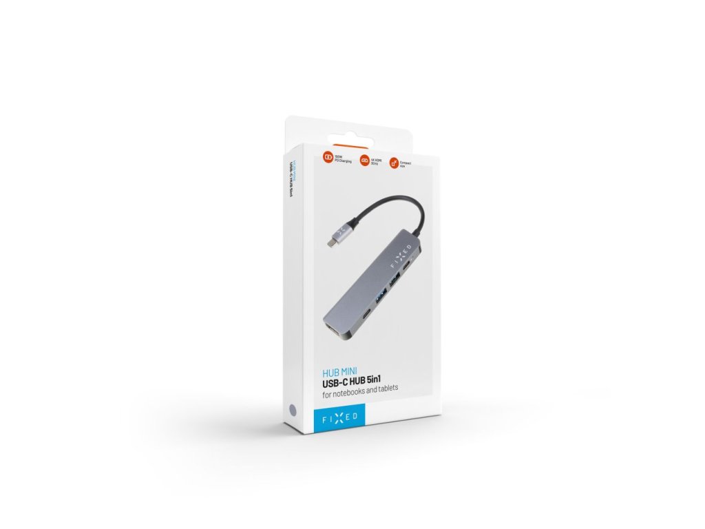 5-portový hliníkový USB-C FIXED HUB Mini pro notebooky a tablety, šedý