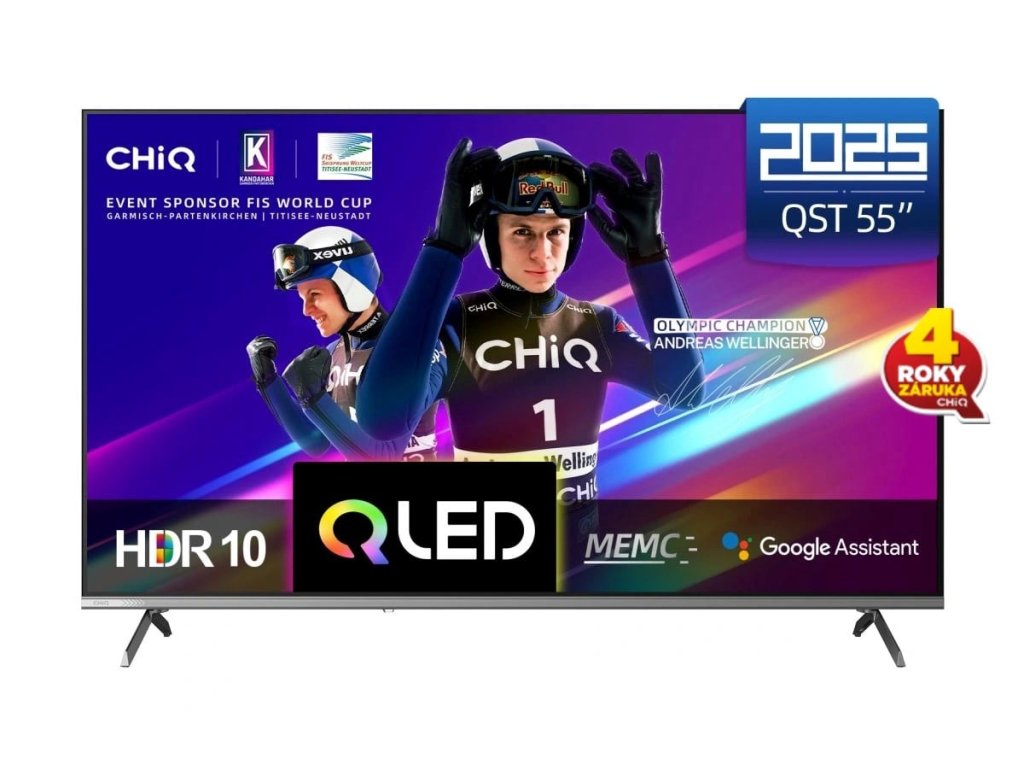 CHiQ U55QST, 55" (139 cm), ultratenká metalická QLED Google TV 5.0, Ultra HD (4K), DLG 120 Hz, MEMC, VRR, ALLM, Dolby Audio, dbx-tv, HDR 10, HLG, WiFi 2,4/5G, Bluetooth 5.0, webový prohlížeč, Google Assistant, Chromecast, Oneplay, YouTube, Netflix, atd.
