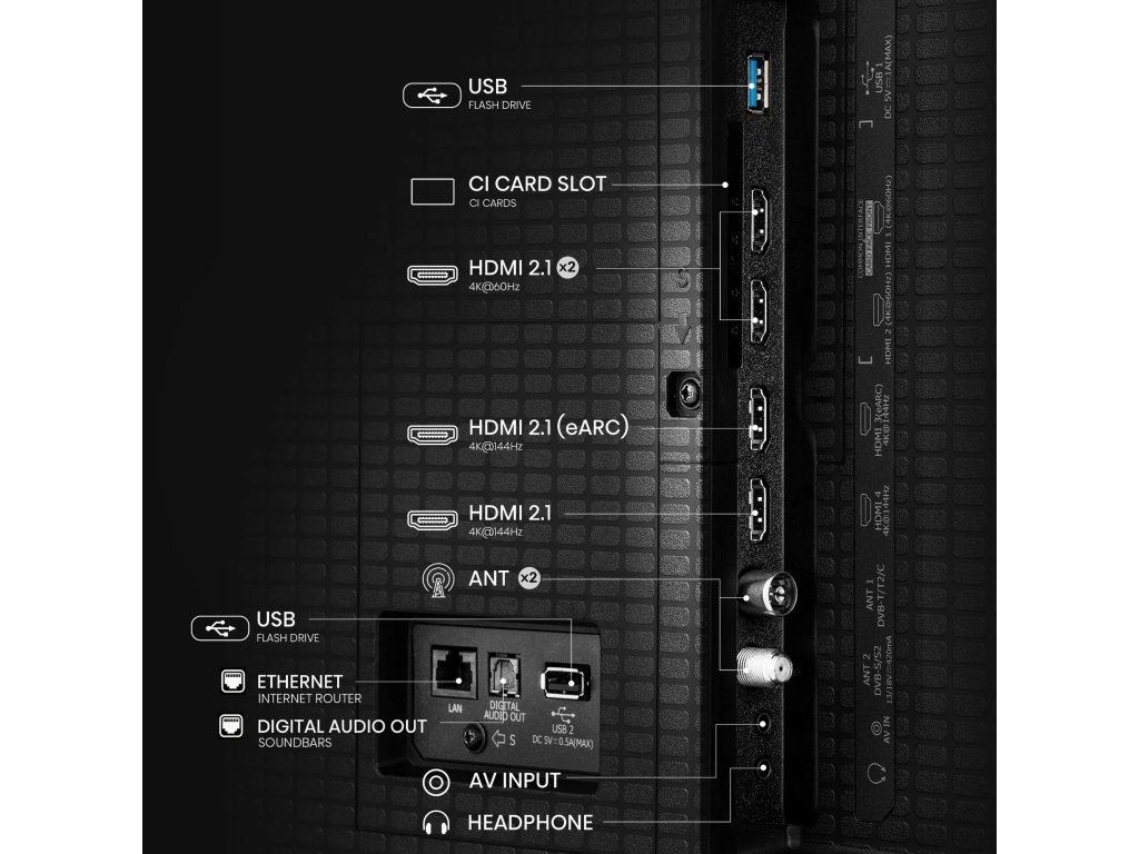 DVB-T2 a konektivita 65" televizoru Hisense 65U7Q