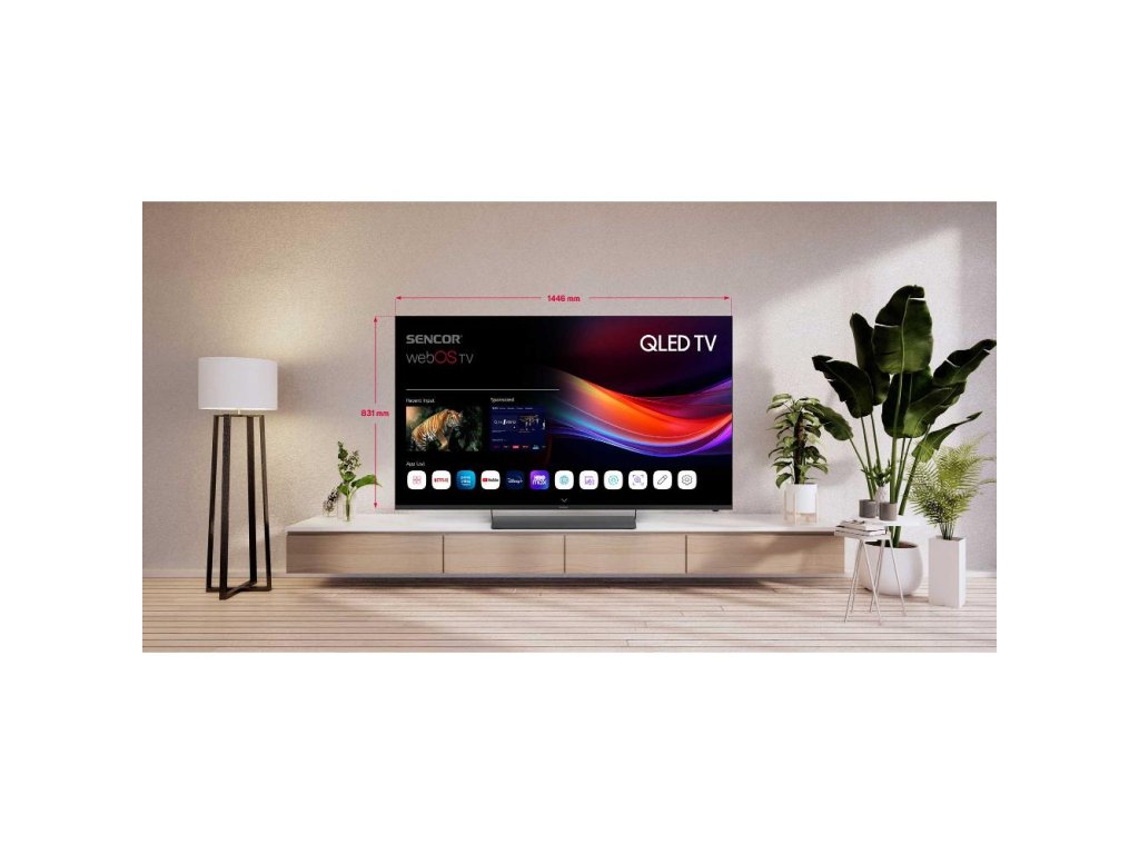 QLED SMART televize, 65"(164cm), OS webOS, rozlišení 4K UHD (3840x2160 px), DVB-T2/C/S2, H.265/HEVC, HDR10, podsvícení Direct LED, HBO MAX, Disney+, Netflix, Apple TV, 3x HDMI, 2x USB, BT, Wifi