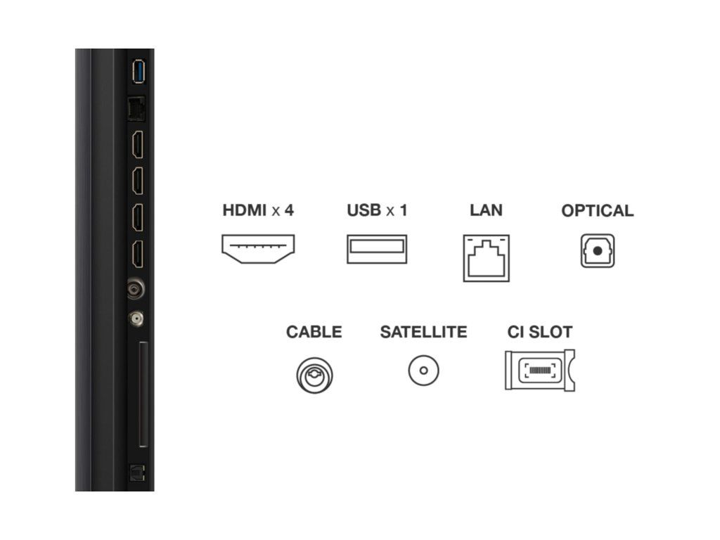 Televize – Google TV, Mini LED, 191cm, 4K Ultra HD, 100/120 Hz (144 Hz – herní režim), HDR10+, Dolby Vision, lokální stmívání, antireflexní obraz, DVB-T2/S2/C, 4× HDMI, 1× USB, LAN, WiFi, Bluetooth, DLNA, Chromecast, Miracast, HbbTV 2.0.3, herní režim, hlasové ovládaní, Google Assistant, Apple Airplay 2, párování s mobilním zařízením, Oneplay, VESA 300×300, repro 60 W, DTS:X, Dolby Atmos, Prostorový zvuk, vestavěný subwoofer, energetická třída F