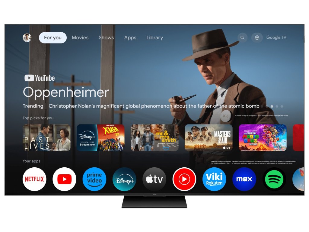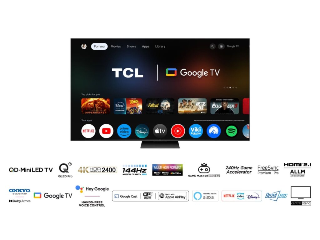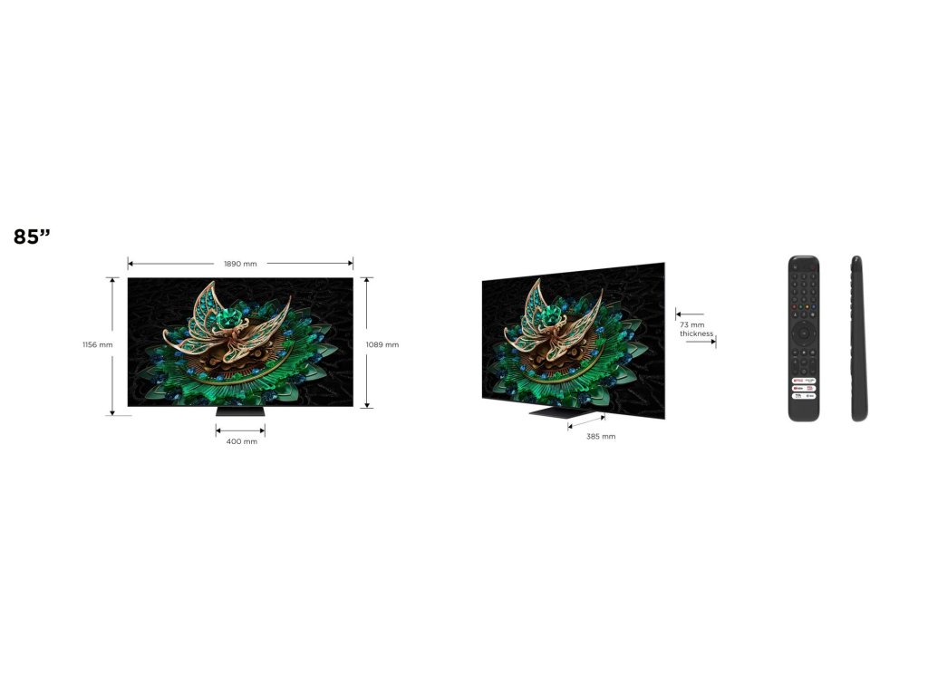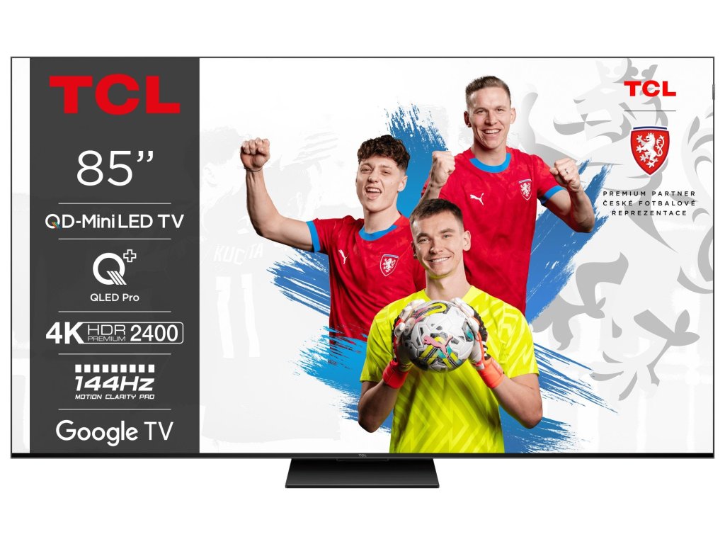 Televize TCL 85C765 SMART Mini LED, 214cm, 4K Ultra HD, PPI 4500 (144 Hz), 2400 nits, Quantum Dot Pro, Dolby Vision IQ, HDR10+, HDR10, HLG, audio 2x15 W+20W, Dolby Atmos, GoogleTV