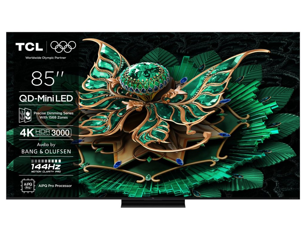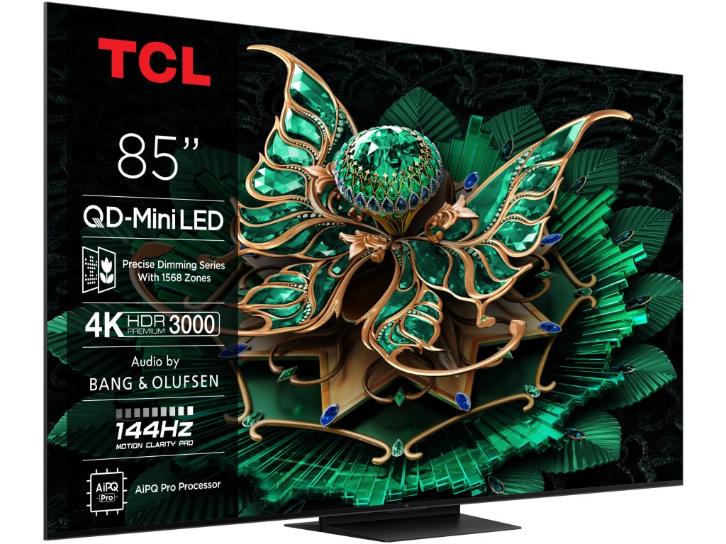 TCL 85C7K Google TV, Mini LED, 215cm, 4K Ultra HD, 100/120 Hz (144 Hz – herní režim), HDR10+, Dolby Vision, lokální stmívání, antireflexní obraz, DVB-T2/S2/C, 4× HDMI, 1× USB, LAN, WiFi, Bluetooth, DLNA, Chromecast, Miracast, HbbTV 2.0.3, herní režim