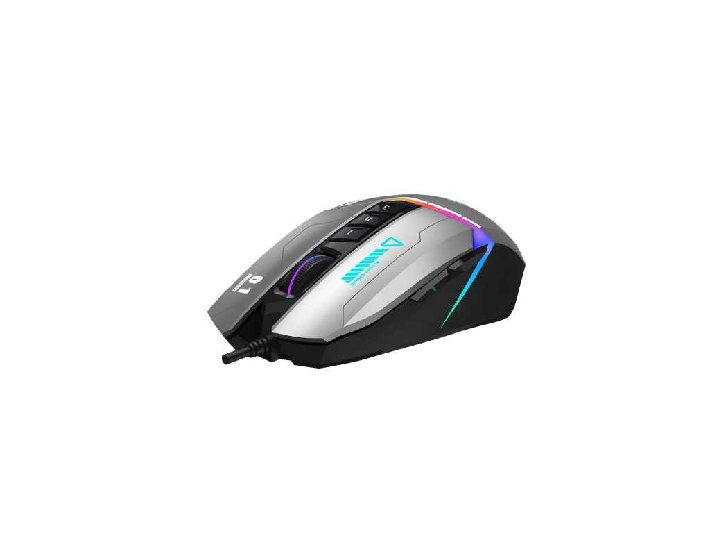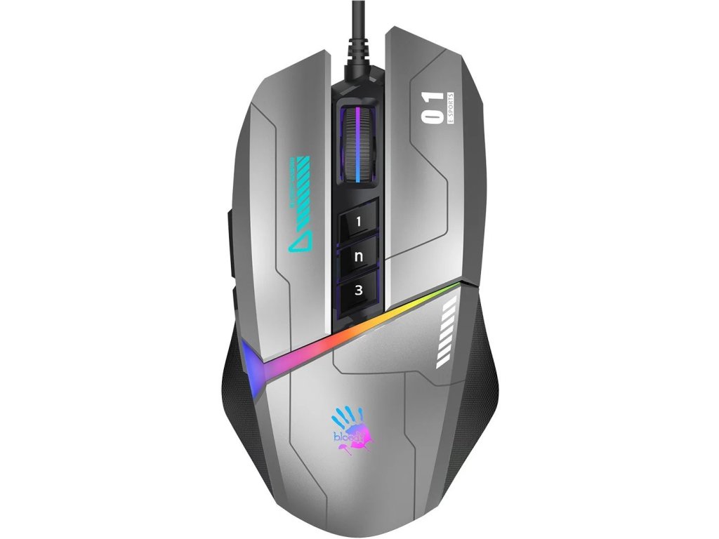 podsvícená herní myš, 12000 DPI, USB, ocelově šedá