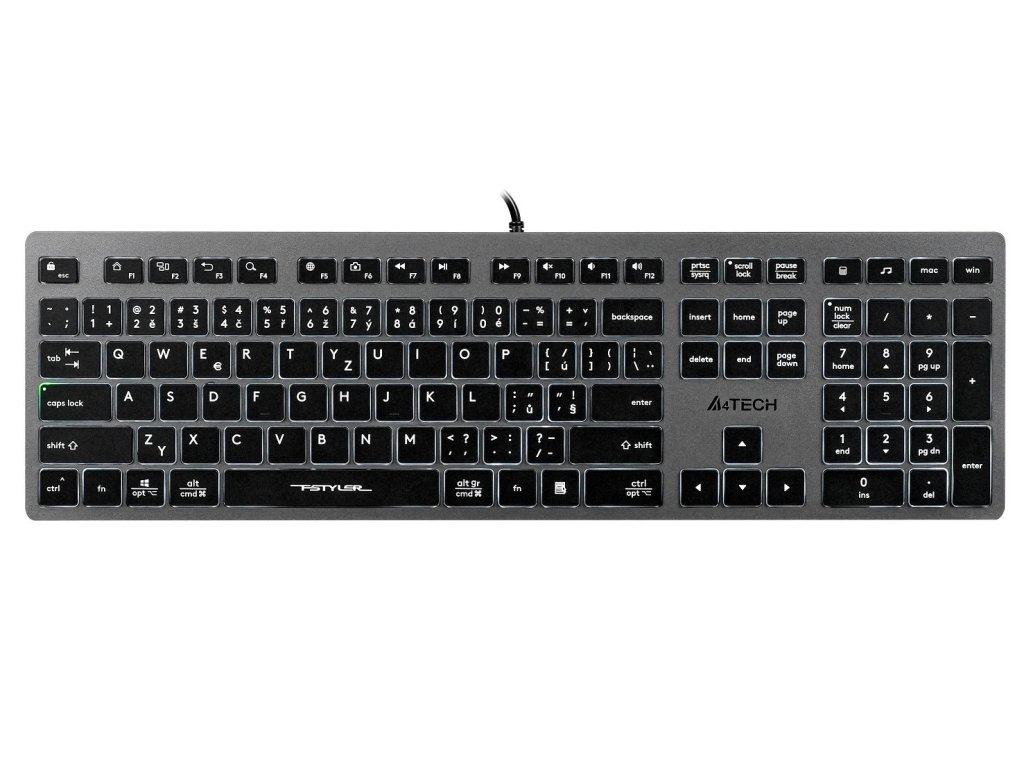 A4Tech FX60, (bílé podsvícení), šedá, CZ/SK