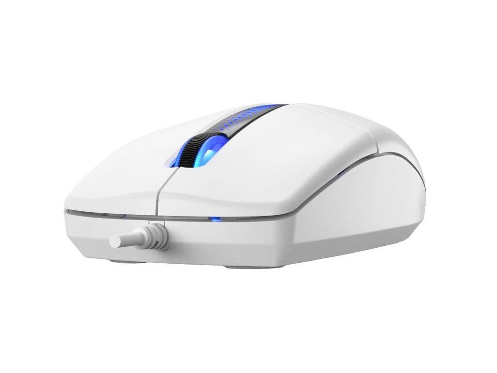 Kancelářská myš • modré podsvícení • optický senzor s rozlišením až 1 200 DPI • 3 tlačítka • technologie Plug and Play • 1,5m kabel • kompatibilní s Windows a Mac • tiché spínače