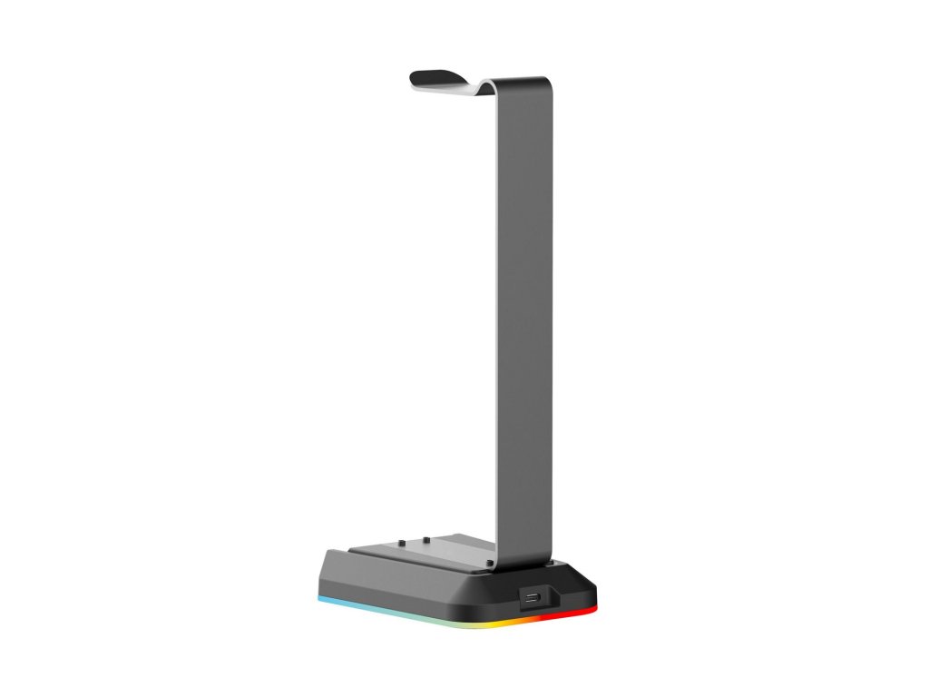 Hliníkový stojan na sluchátka, výška 27,5cm  USB-C napájecí port, 1,5m USB-C/USB-A odnímatelný kabel součástí balení, RGB podsvícení s 6 barevnými módy