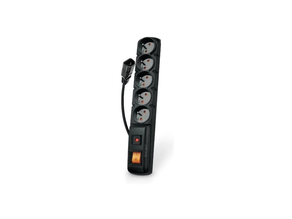 Acar F5 IEC 5m kabel, 5 zásuvek, přepěťová ochrana, C14 do UPS, černý.