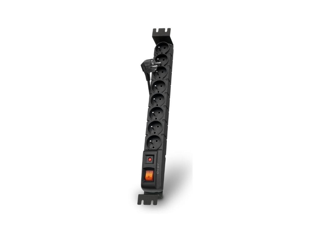 Acar S8 FA Rack 1,5m kabel, 8 zásuvek, přepěťová ochrana, do racku, černá