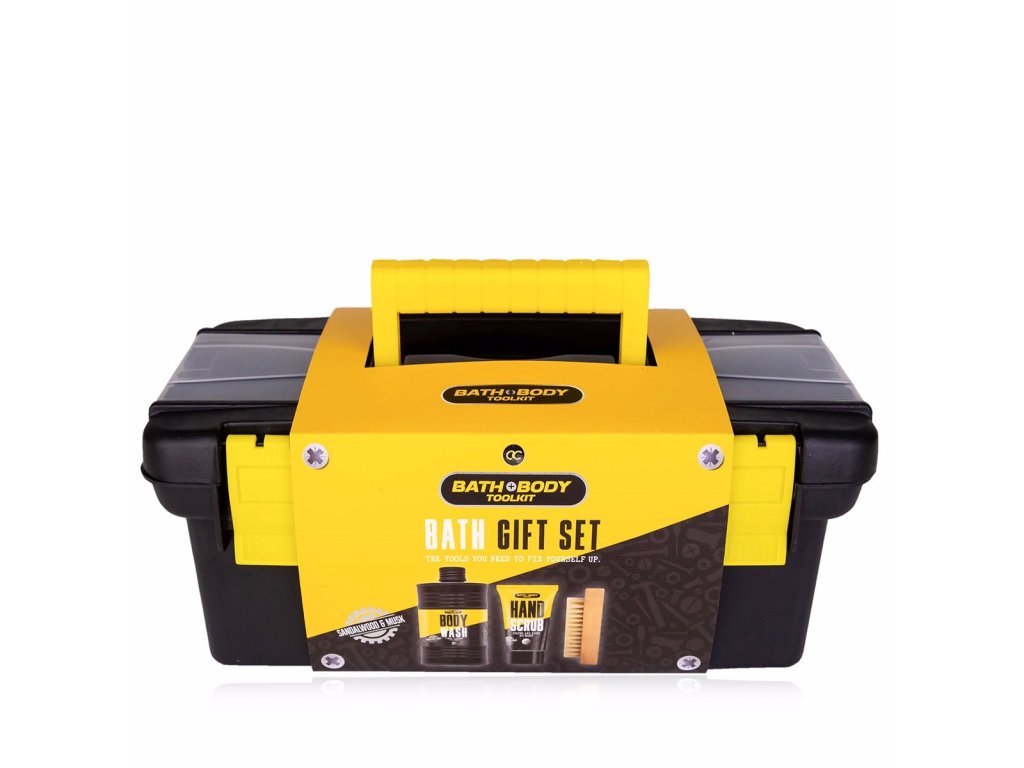 SET koupelový BATH and BODY TOOLKIT v malém boxu na nářadí.