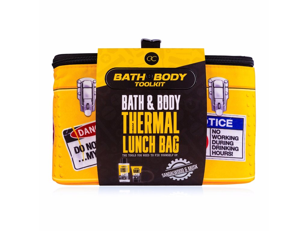 Obsah: termotaška (udrží obsah studený/teplý 3 - 4h), 200 ml gel sprchový, 50 ml peeling na ruce, 20 g síťová houba, vůně: santalové dřevo a pižmo.
