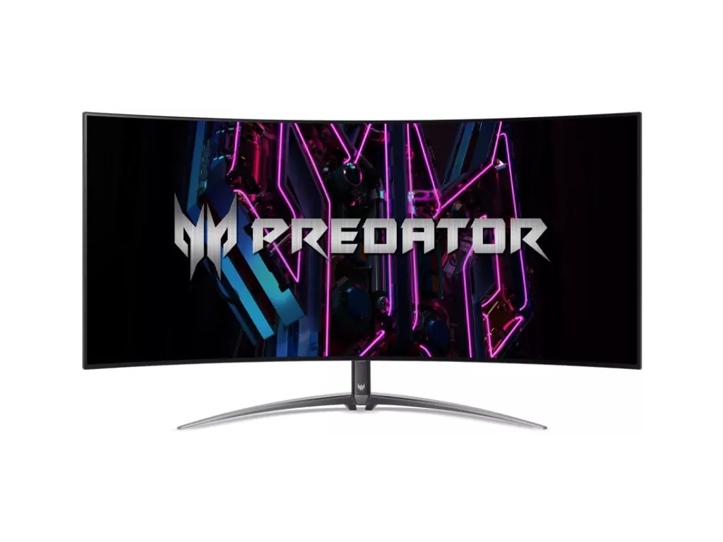 Monitor - 45" OLED HD displej (3440x1440px), Frekvence 240 Hz, Formát obrazu 21:9, Doba odezvy 0,01 ms, Kontrast 1500000:1, Jas 1000 cd/m2, HDMI, DisplayPort, USB 3.0, USB-C, Interní reproduktory, Freesync, Černá, Prohnutý