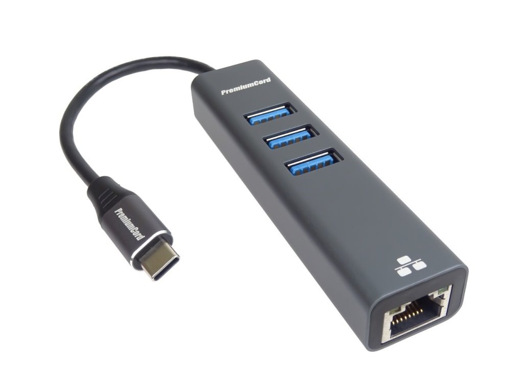 PremiumCord Adapter USB-C na Gigabit 10/100/1000Mbps + 3x USB3.0 konektor