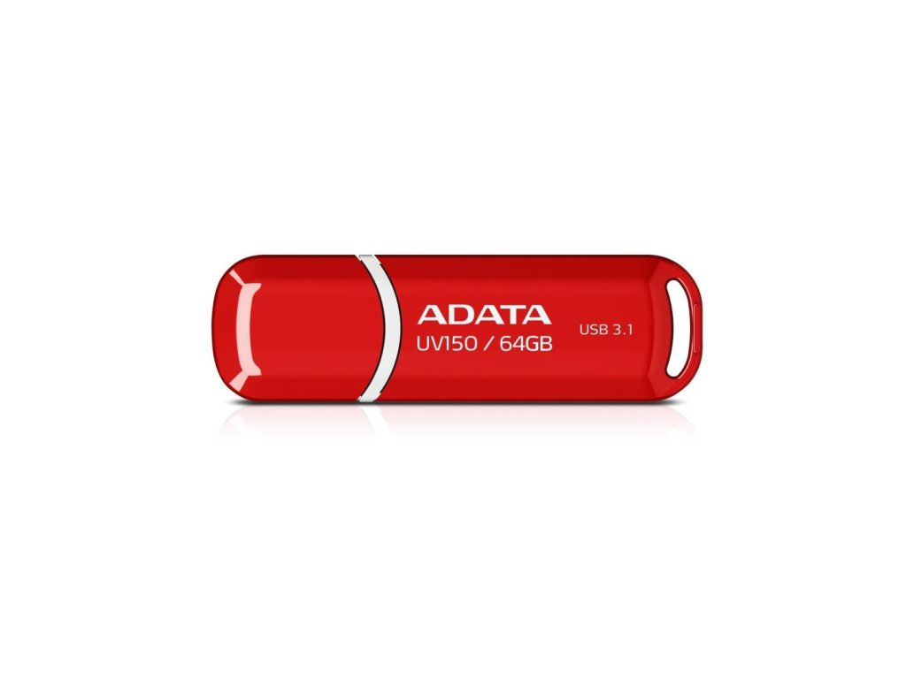 Adata UV150, USB disk, flash memory, 64GB, USB 3.1, čtení až 90MB/s, zápis až 20MB/s, červená