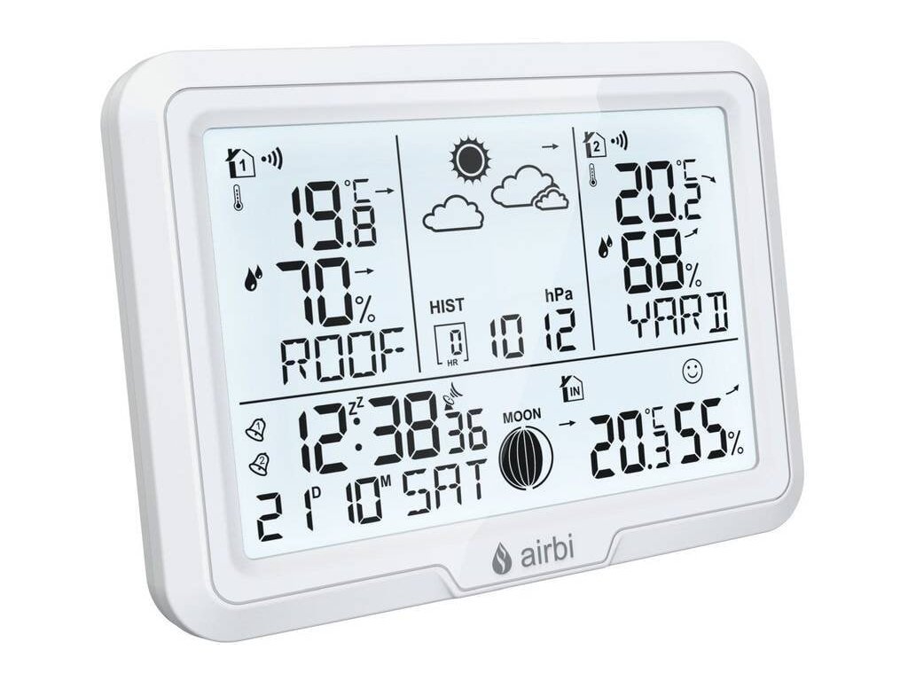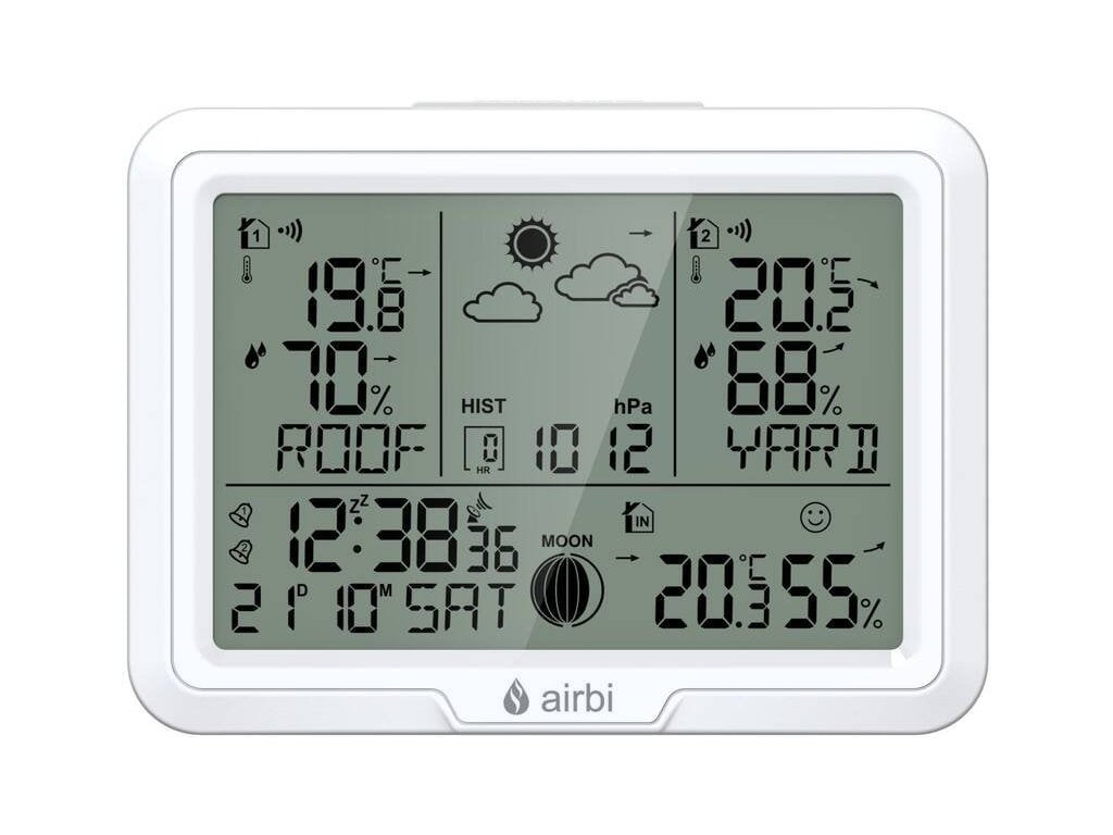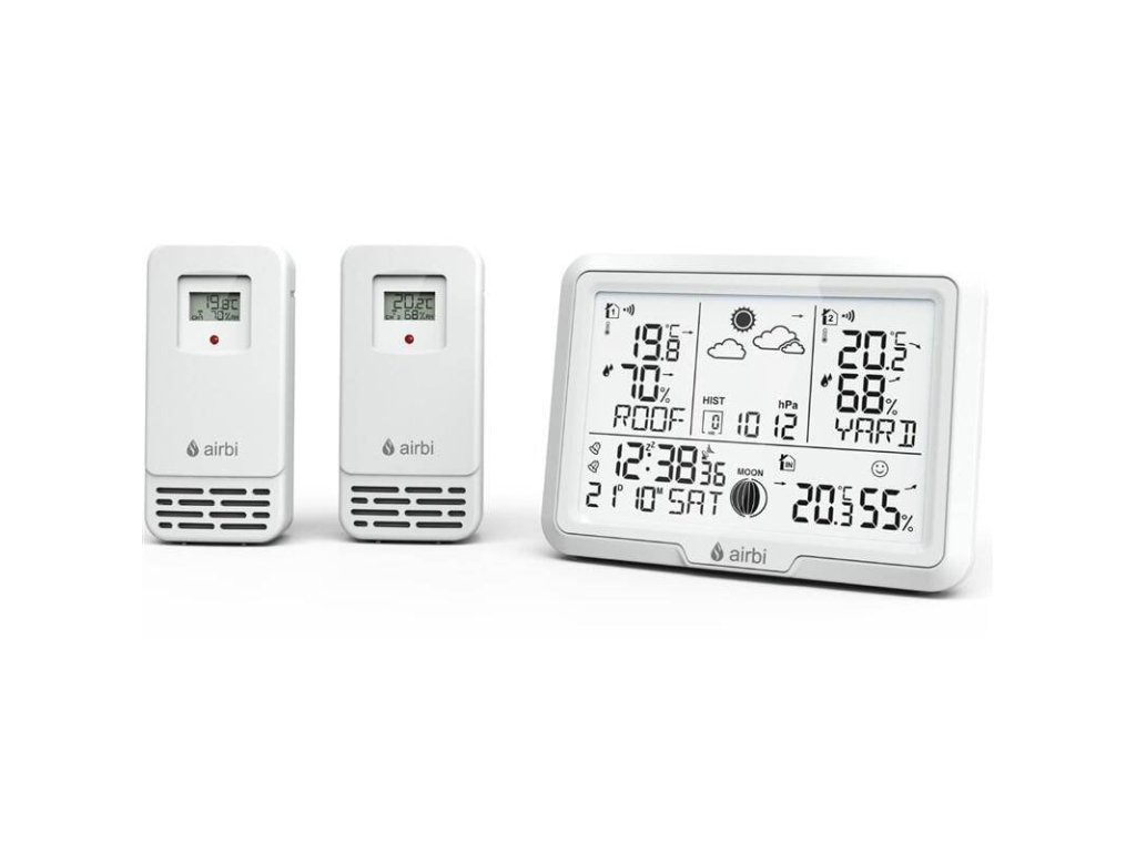 Airbi DUO je meteostanice, se kterou budete mít okamžitě přehled o teplotě a vlhkosti až na 3 místech. Vnitřní jednotka má zabudované senzory pro měření teploty a vlhkosti v interiéru. K měření těchto hodnot venku nebo v dalších místnostech slouží 2 bezdrátová čidla, která jsou již součástí balení (max. dosah 100 m v otevřeném prostoru).