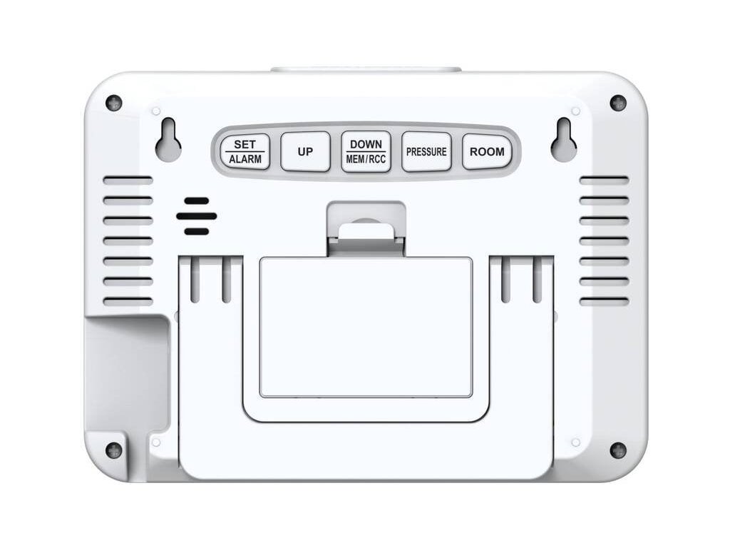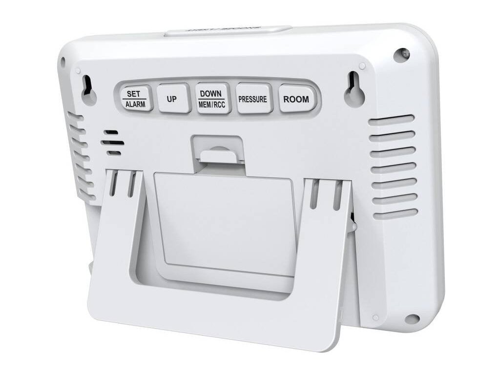 Displej vnitřní jednotky si můžete na několik vteřin rozsvítit stiskem tlačítka, díky tomu bude dobře čitelný i v šeru nebo ve tmě. Přístroj má i funkci stálého podsvícení, to je ale možné pouze při napájení adaptérem ze sítě, který je nutné dokoupit. Vnitřní jednotku můžete postavit na podložku pomocí výklopného stojánku nebo zavěsit na stěnu.