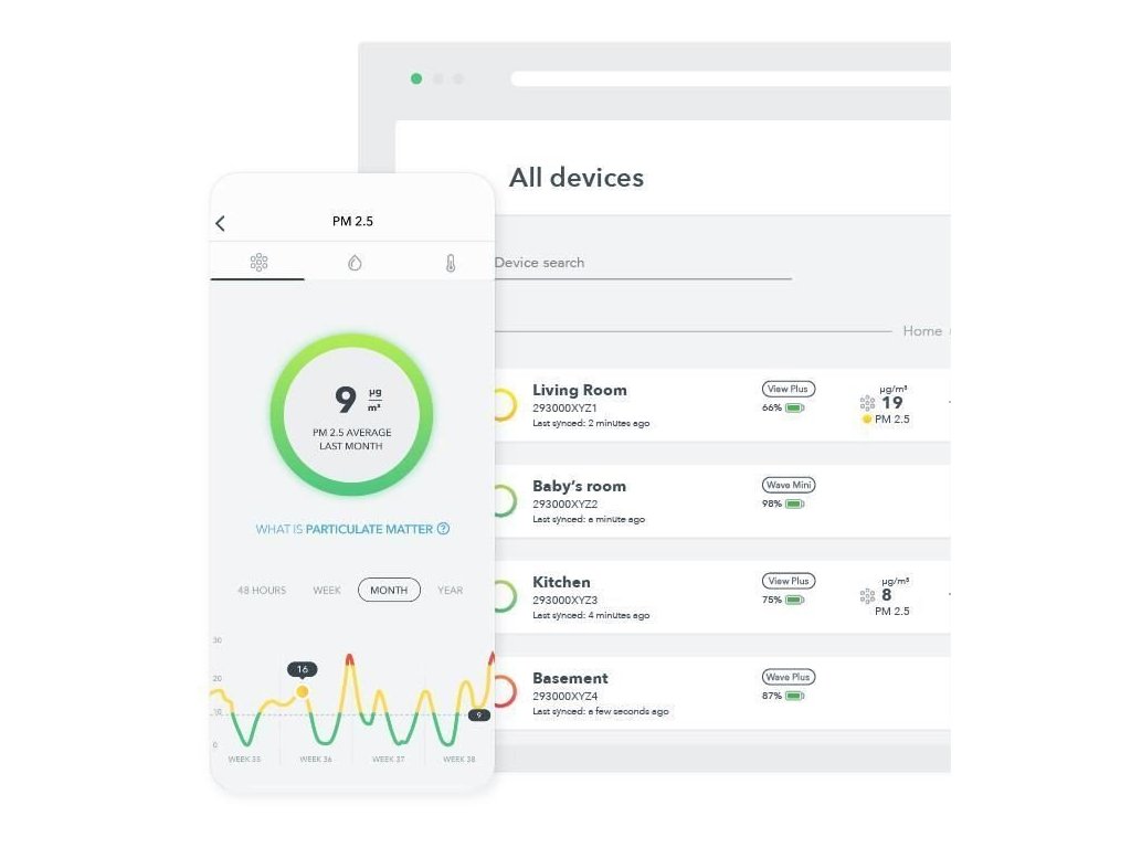 AirThings View Pollution nabízí senzory, které průběžně měří pevné částice (PM), vlhkost a teplotu. Vy si můžete být v každém okamžiku jisti, že jejich hodnoty máte pod kontrolou.