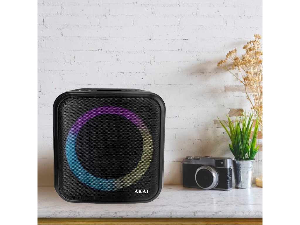 Akai ABTS-S6 přenosný reproduktor se stativem a vestavěnou baterií, Bluetooth 5.0, USB, čtečka SD, TWS funkce, FM radio, vstup pro mikrofon a kytaru, RMS 20 W