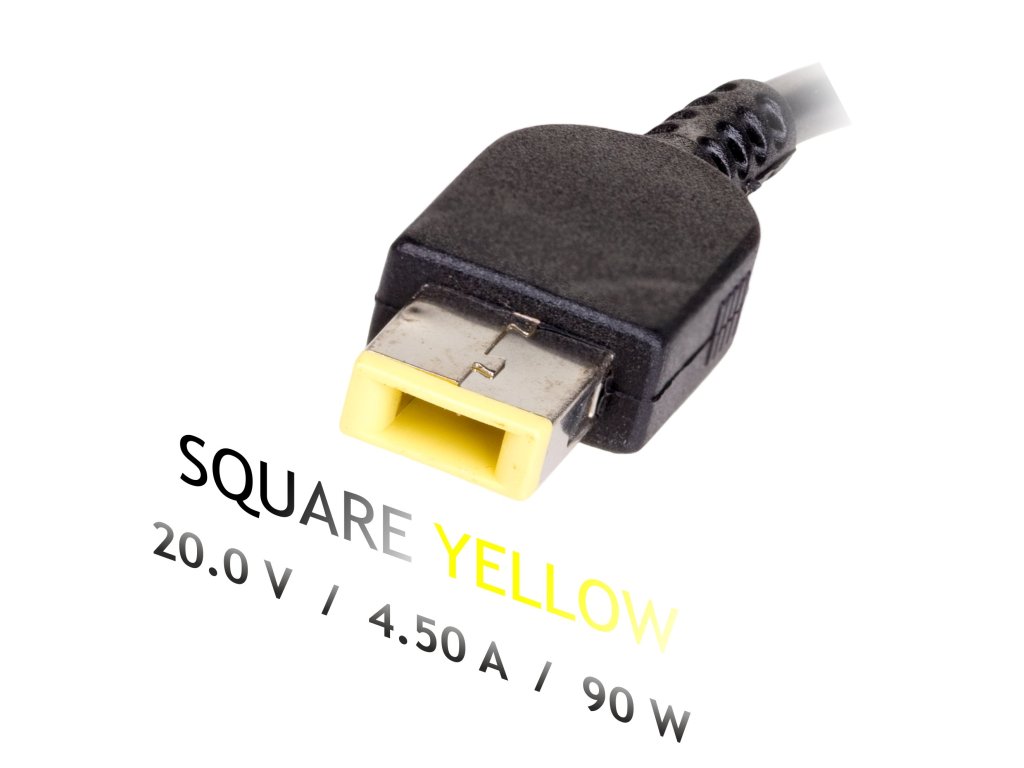 napájecí zdroj, síťový adaptér pro notebook, AC 100-250V - 20V 4.5A, výkon 90W, konektor Square yellow (slim tip), vhodný pro Lenovo, bez napájecího kabelu.