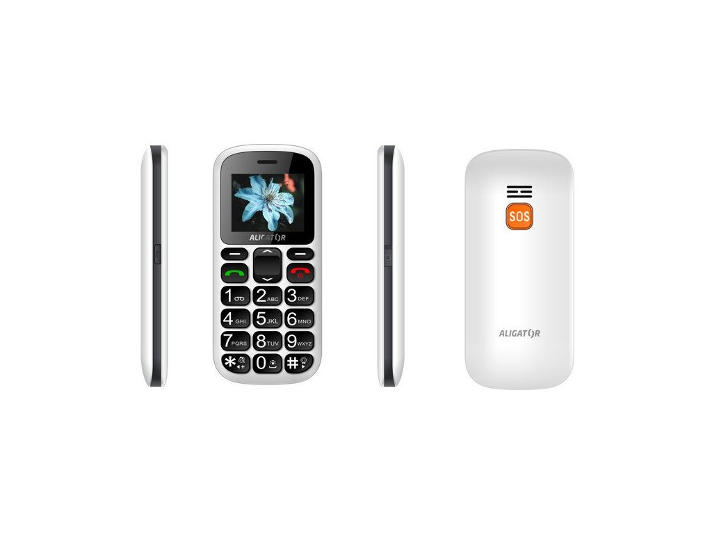 Klasický telefon pro seniory s SOS tlačítkem, možností obrázkového tel. seznamu a funkcí určení polohy SOS locator,
