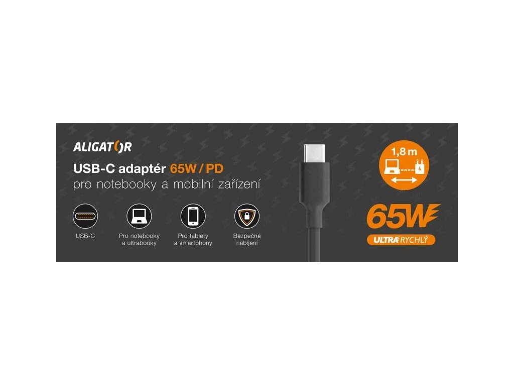 Aligator chytrý USB-C adaptér Power Delivery 65W