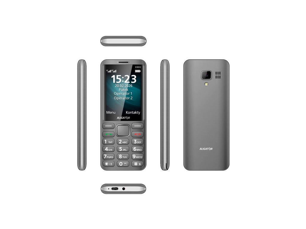 ALIGATOR D860 nabízí FM rádio, výkonnou svítilnu, budík, kalkulačku, Bluetooth připojení i multimediální přehrávač. Nechybí VGA fotoaparát pro zachycení momentek ani 3,5mm jack pro připojení sluchátek. Vše je navrženo tak, aby bylo snadno dostupné a připravené k použití kdykoliv během dne.