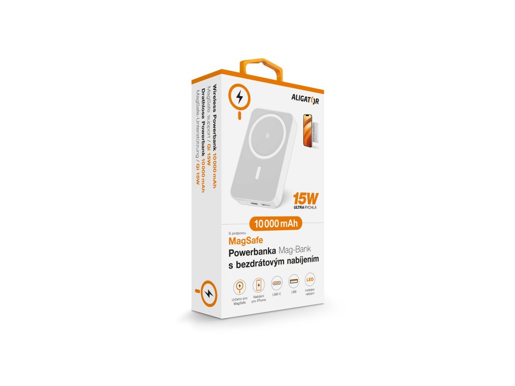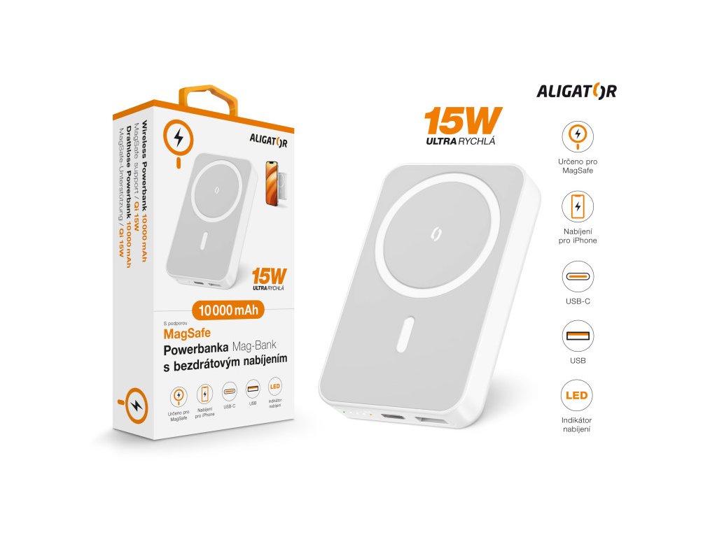 Aligator Mag-Bank, 10 000 mAh, bílá