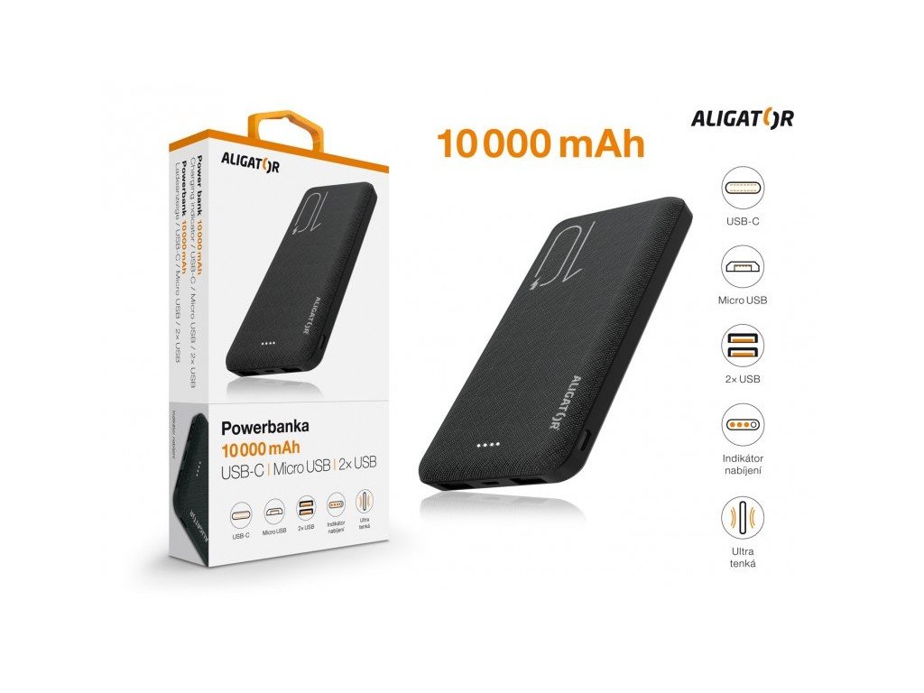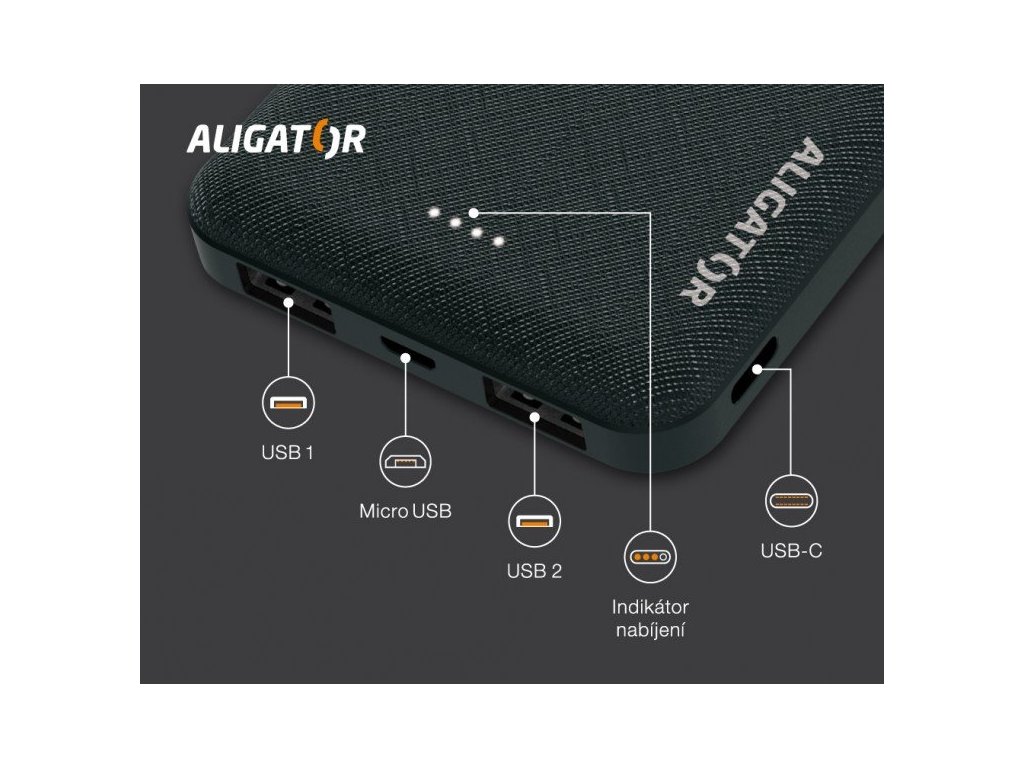 ALIGATOR Powerbanka PBAL1000BK 10000mAh 2v1, černá, výstup 2x USB(A) DC 5V 2A