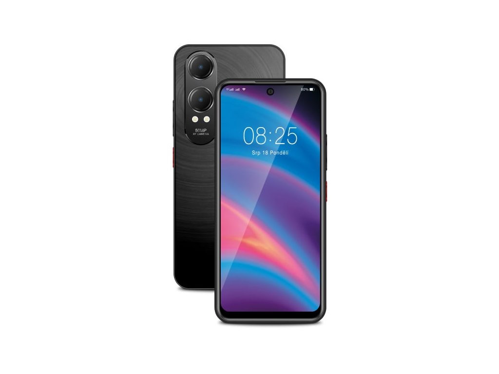 Smartphone 6,8" IPS HD+ (1600x720), octa core, 4GB RAM, interní paměť 128GB, slot MicroSD (až 512 GB), fotoaparát 50MPix zadní/ 8MPix přední, BT 5, GPS, WiFi, NFC, 4G, Dual SIM (nano), Android 15