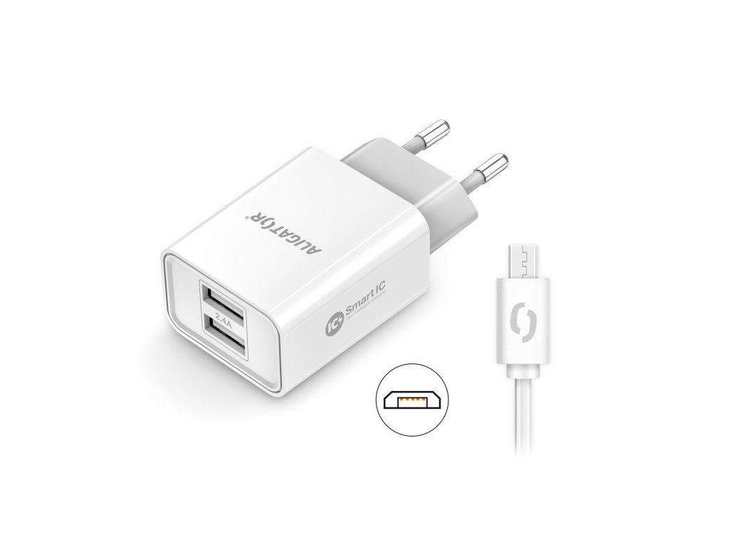 ALIGATOR síťová nabíječka MicroUSB 2xUSB výst. 2,4A, smart IC, bílá