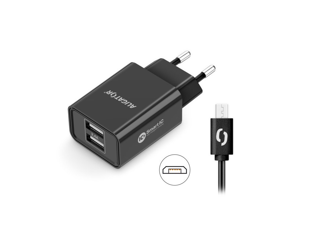 ALIGATOR síťová nabíječka MicroUSB 2xUSB výst. 2,4A, smart IC, černá