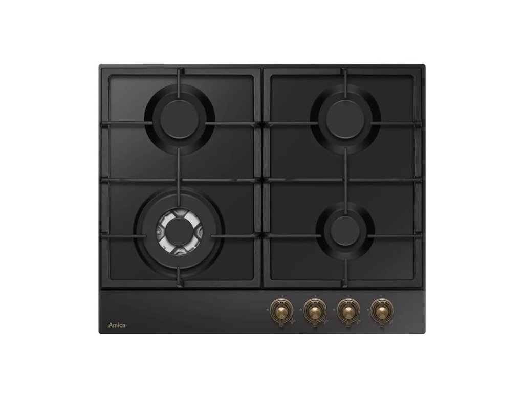 Plynová varná deska, 4 varné zóny, smaltovaná, litinové rošty, mechanické ovládání, pojistka plynových hořáků, retro design, šířka 59 cm.