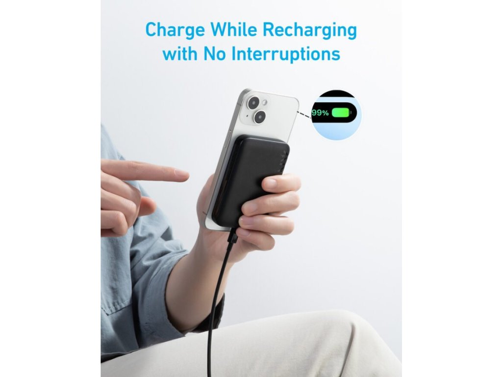 Nabíjení během dobíjení: Bezproblémově nabíjejte svůj iPhone, zatímco se magnetická baterie Anker 321 nabíjí, takže nemusíte před použitím čekat, až bude powerbanka plně nabitá.