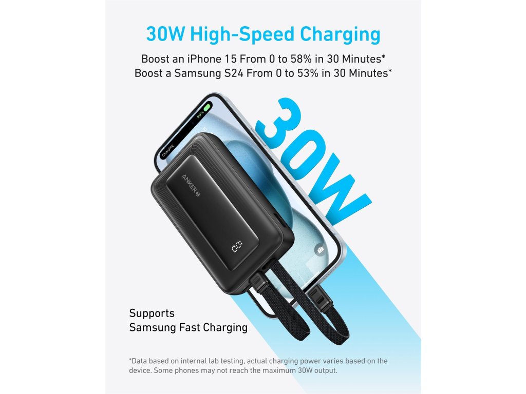 Anker Power Bank 10000mAh, 30W, s USB-C a Lightning kabelem, černá
