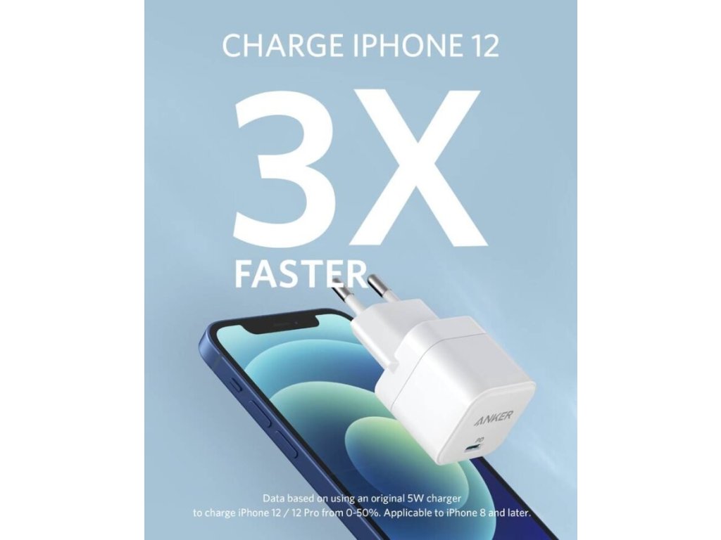 Anker PowerPort III 20W USB-C je síťová nabíječka s podporou rychlého nabíjení, kompatibilní s iPhone 15/14/13/12, Galaxy, Pixel 4/3, iPad/iPad Mini a další.
