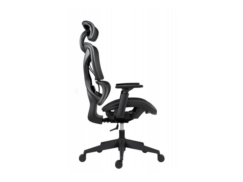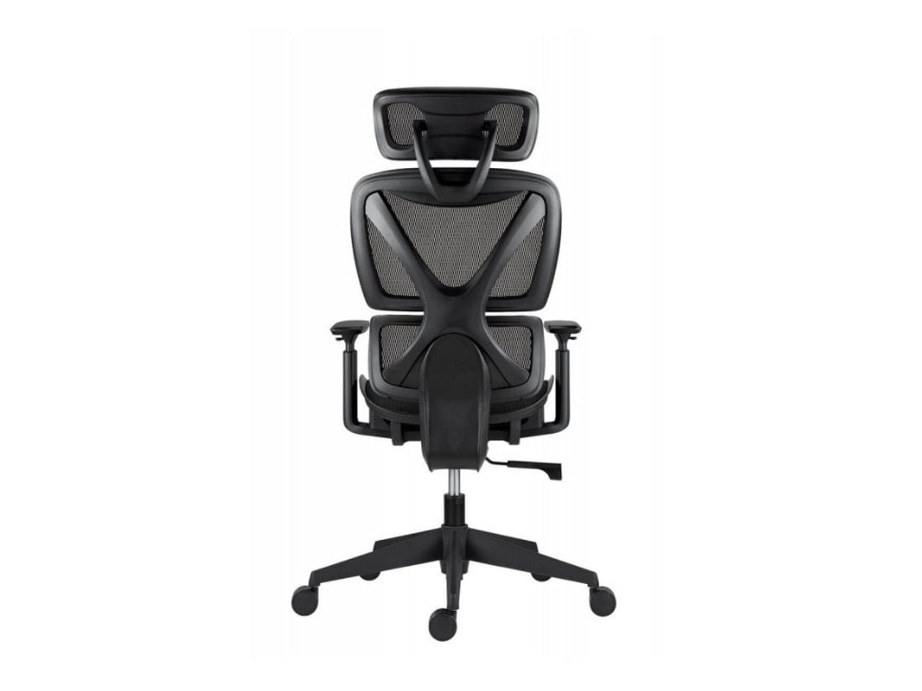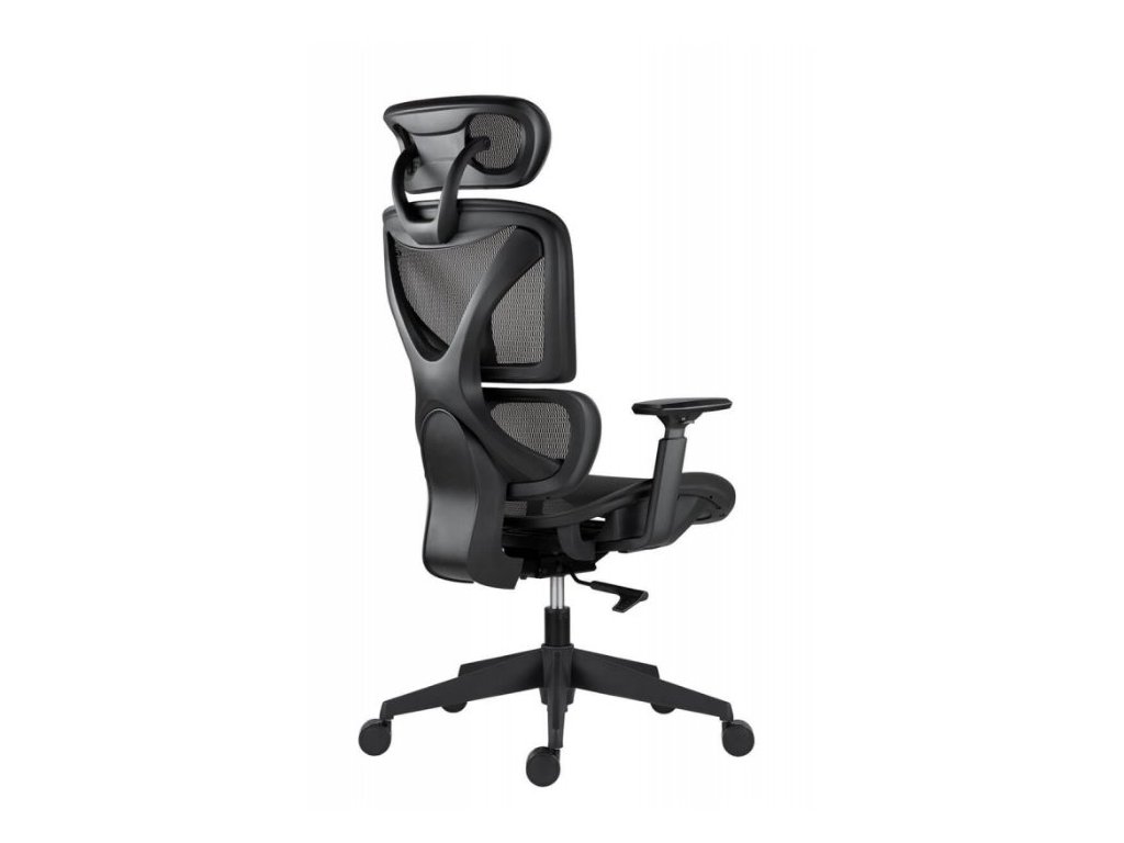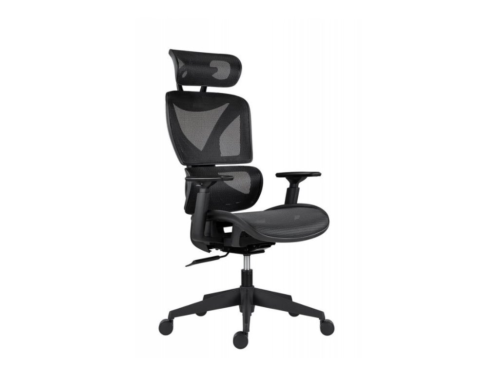 Kancelářská židle se sítí na sedáku, opěráku a podhlavníku, prodyšnost zvyšuje komfort a hygienu sezení, zabraňuje přehřívání dotykových partií těla.