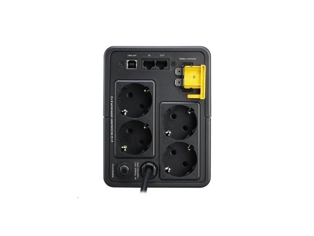 záložní zdroj, kapacita 950 VA (520 W), přepěťová ochrana, výstupní napětí 230 V, AVR, 4× zásuvka Schuko, zajistí napájení při výpadku el. proudu, USB port, ochrana telefonní a internetové sítě