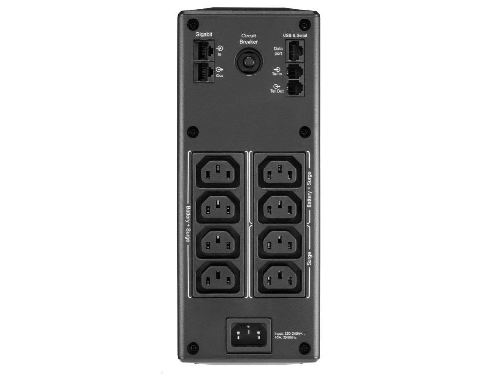 záložní zdroj, kapacita 1600 VA (960 W), přepěťová ochrana, výstupní napětí 230 V, AVR, 8× zásuvka C13, zajistí napájení při výpadku el. proudu, USB port, ochrana telefonní a internetové sítě