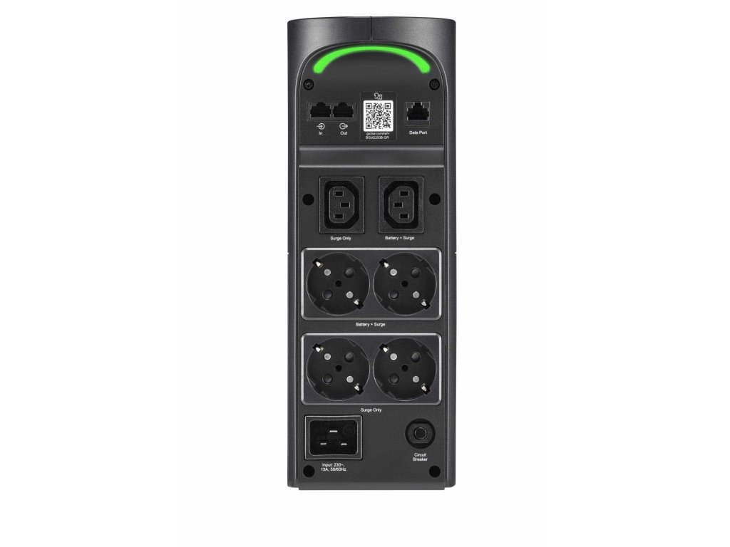 Záložní zdroj UPS 2200VA/1320W má celkem 6 zásuvek, z nichž 3 jsou záložní baterie a přepěťová ochrana a 3 jsou pouze přepěťovou ochranou. Má nárazovou energii 1080 joulů. Je vybavena automatickou regulací napětí, která koriguje poklesy a rázy napětí na správnou úroveň.