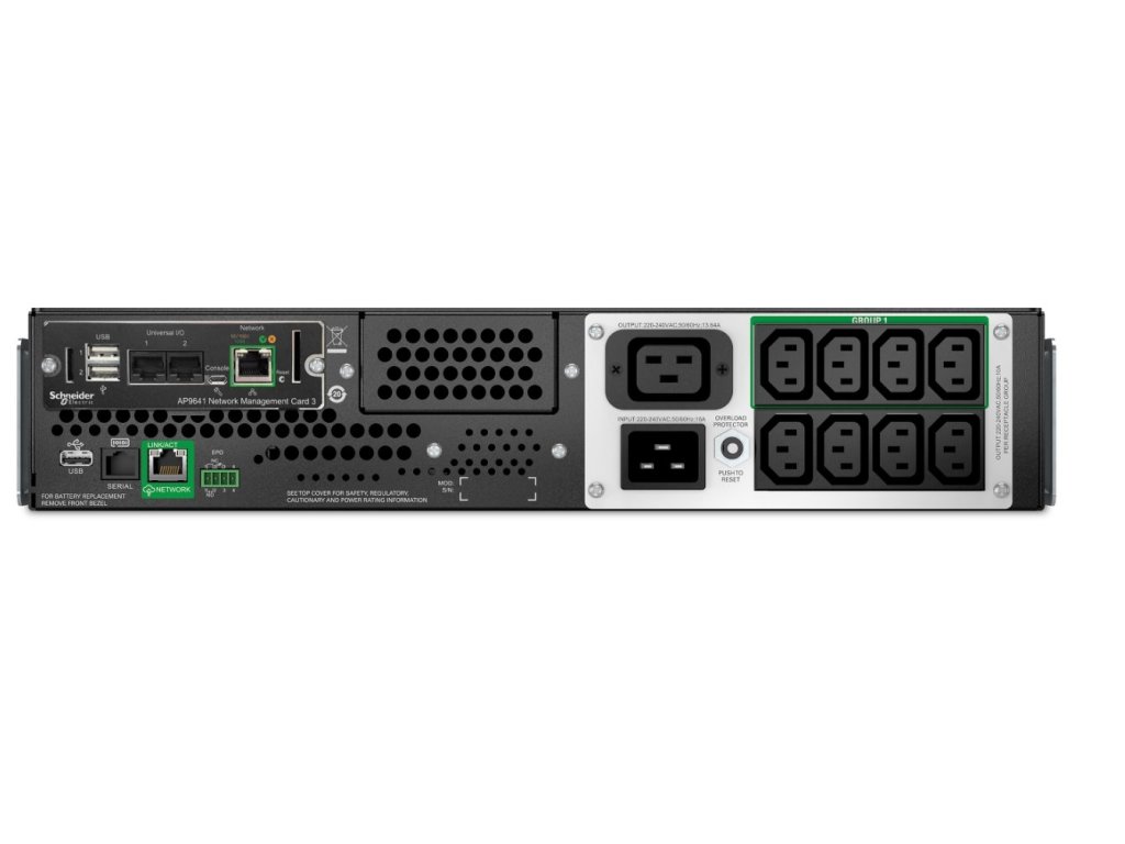 Interaktivní 2U UPS pro montáž do racku o výkonu 3000 VA poskytuje čistý sinusový výkon pro podporu kritické elektroniky během výpadků napájení. Dodává se se vstupem IEC 320 C14, 8x výstupy IEC 320 C13 a 1x IEC 320 C19. Má předinstalovanou kartu Network Management Card pro síťové monitorování a správu UPS. Nabízí cloudové vzdálené monitorování napájení, upgrady firmwaru UPS, vzdálenou diagnostiku a proaktivní e-mailová upozornění s doporučenými akcemi. UPS lze připojit k platformě EcoStruxure IT nebo k platformám centralizované správy třetích stran. Poskytuje přepěťovou ochranu proti úderu blesku, výpadkům proudu, výpadkům proudu a přepětí. SMTL UPS má 5letou záruku na UPS a lithium-iontovou baterii.