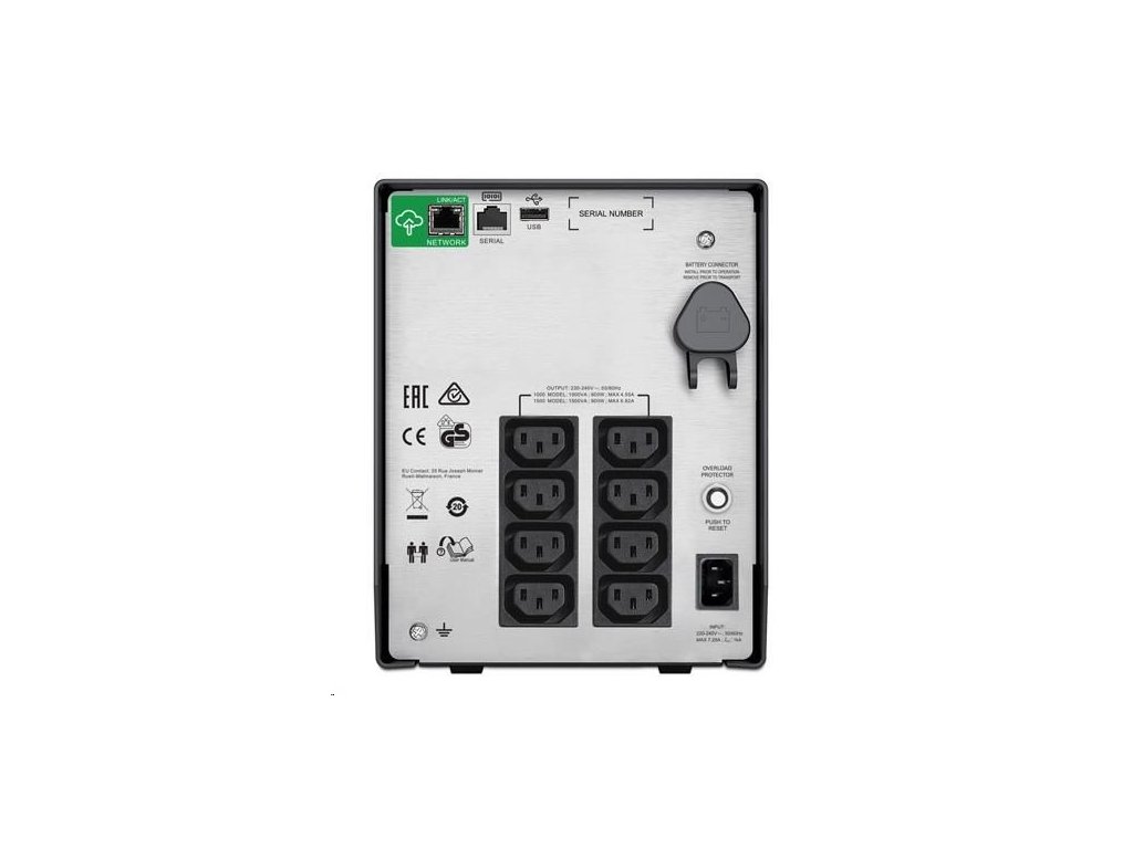záložní zdroj, kapacita 1000 VA (600 W), přepěťová ochrana, výstupní napětí 230 V, AVR, 10× zásuvka (8× C13, 2× Jumpers), zajistí napájení při výpadku el. proudu, USB port
